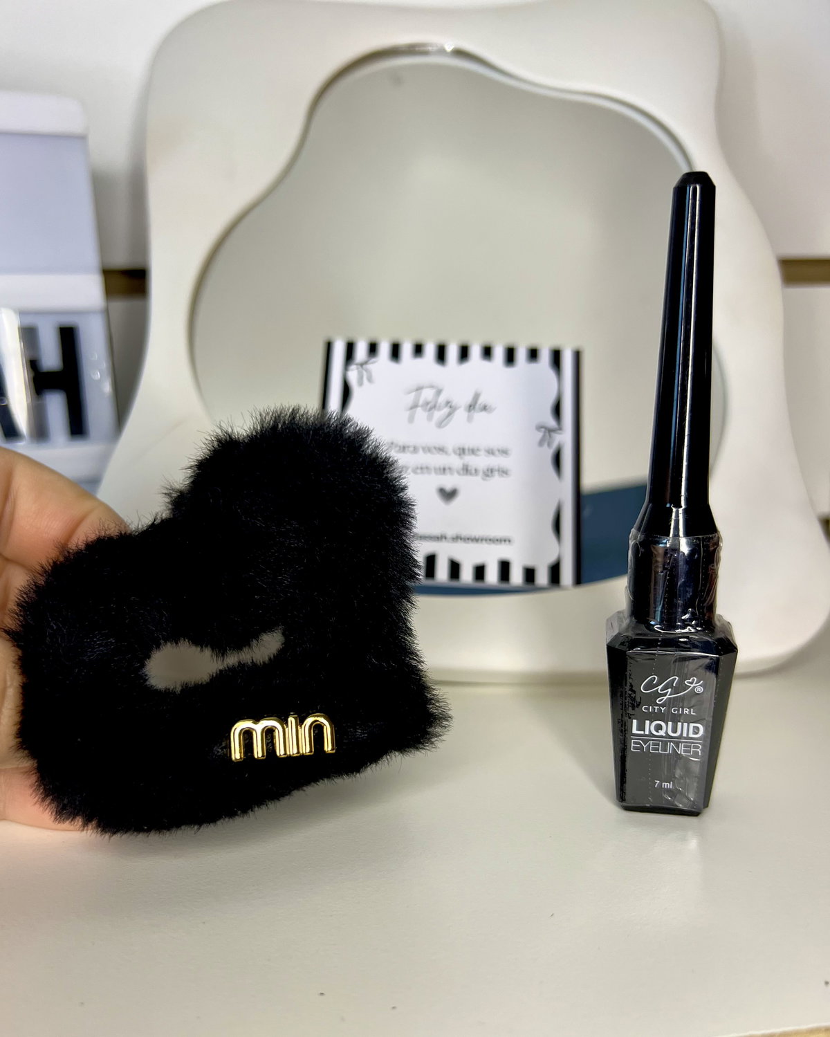 Broche peluche forma de corazón + Delineador líquido larga duración 🖤